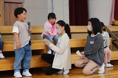 1年生をむかえる会を行いました。1年生へのインタビューや縦割り班でのクイズやゲーム等で楽しい時間を全校生で過ごしました。1年生へのプレゼントもあり,みんなの顔もほころびました。