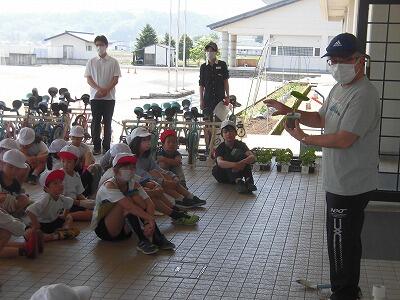3・4年生は自転車に乗って道路で実地訓練,1・2年生は歩行訓練を行いました。道路を歩いたり自転車に乗ったりする際に注意しなければならないことなどを指導していただき,命を守るための大事な学習になりました。