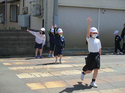 4月22日(火)河北町交通安全専門指導員さんや交通指導員の方々を交えて、交通安全教室を行いました。