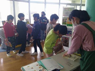 4月25日(金)河北町立中央図書館の「子ども文庫」がやってきました。