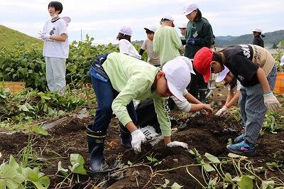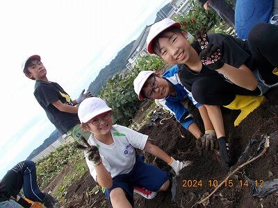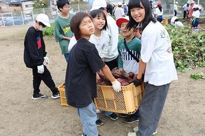 5月に縦割り班で学校園に苗うえをし、全校生で育て収穫したさつま芋を、焼き芋にしておいしくいただきました。