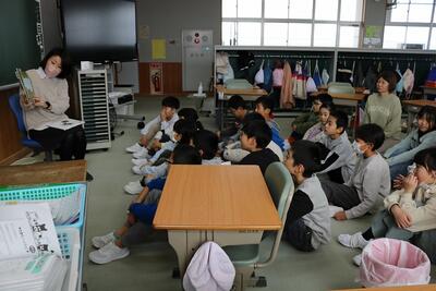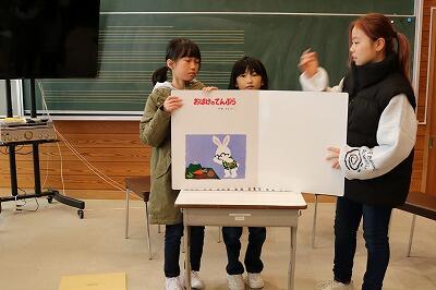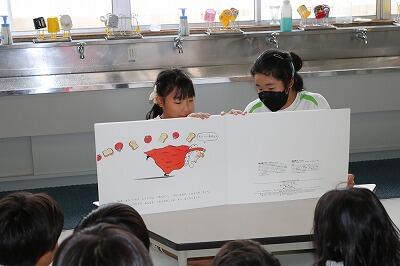11/19の朝の時間には先生方による読み聞かせがありました。また昼休みには図書委員会の子ども達が事前に音読の練習した本の読み聞かせが3か所に分かれて行われました。