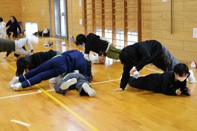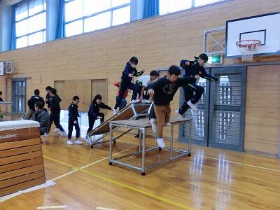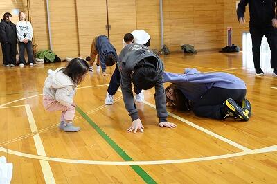 12/6(金)、PTA主催の研修会「親子運動教室」が行われました。講師に「Chimaira」(キマイラ)の荒木優希さんをお招きし、いろいろな体の動きをしながらのオリエンテーションを含め、パルクール「(走る)(跳ぶ)(登る)といった移動に重点を置く動作をを通じて心身を鍛えるスポーツ」の考え方や楽しさに触れました。