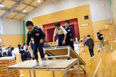 子ども達は走ったり、セットされた器具を登ったりジャンプしたりするうちに、すっかりパルクールの魅力に引き込まれて、楽しく体を動かしていました。