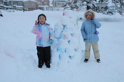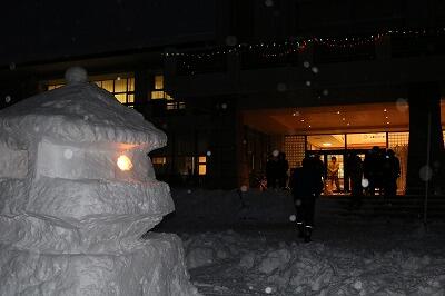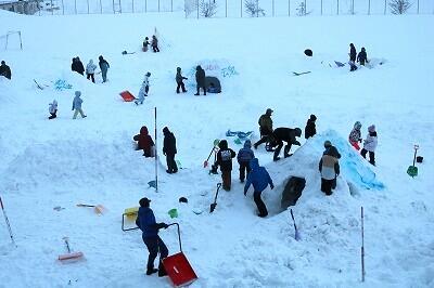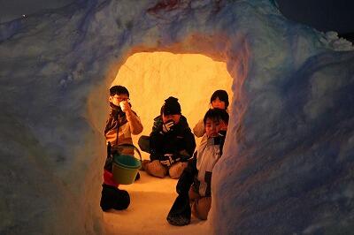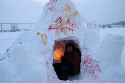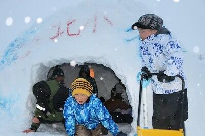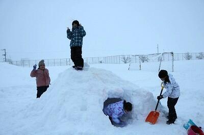 コロナ禍や積雪不足のためしばらくの期間中止になっていた、北谷地地区育成会主催のファンタジーナイトが開催されました。雪が降ったり強い風がふいたりと目まぐるしく天候が変わる中でしたが、午後から雪灯篭やかまくら作りを行いました。夕方には子ども達の思いや願いが絵付けされたスカイランタンをあげることを試みましたが、強風のためかないませんでした。それでも子ども達は、雪の中で地域の方々のぬくもりを感じながら楽しく過ごしていました。