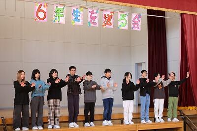 2時間目に全校生が体育館に集まり「6年生を送る会」を行いました。6年生へのインタビューや縦割り班で答えるクイズやゲームで楽しい時間を過ごしました。また在校生から6年生へありがとうの気持ちを込めたメッセージを贈った後、6年生からは1~5年生に学年ごとにメッセージが贈られました。それは「これまでありがとう」と「これからもがんばってね」という6年生からの心に響く言葉でした。さらに6年生からは寸劇の楽しいプレセントもありました。寒い体育館がとても心が暖まる空気に包まれました。