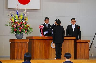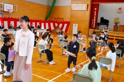 新入生全員が「はいっ。」と元気な返事ができて、新入生とは思えないほど立派な姿でした。校長先生から教科書を授与していただくときも