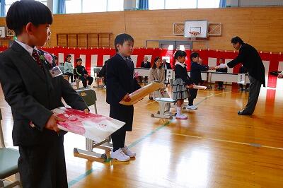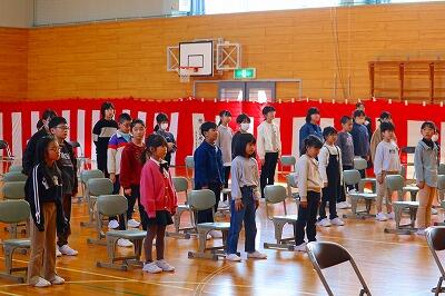 卒業生の希望に満ちた門出を全校児童、全職員、来賓の方々、保護者のみなさんでお祝いしました。