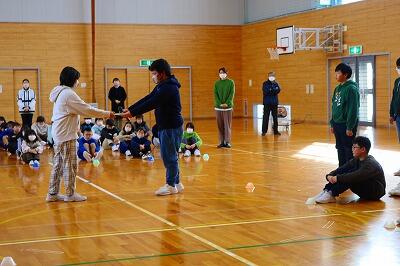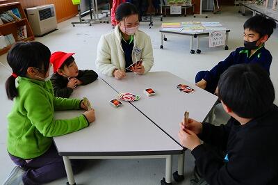 それぞれの班でやりたい遊びを決めたので、オープンスペースではカードゲーム、体育館ではバトミントンやバスケットボール、グラウンドでは小雪が舞う中、野球を楽しむ班とそれぞれでした。