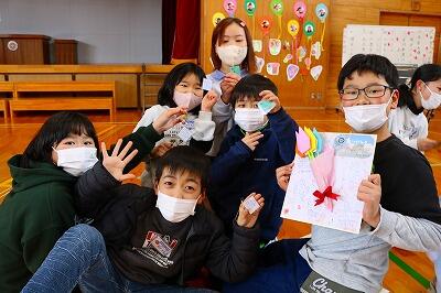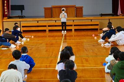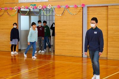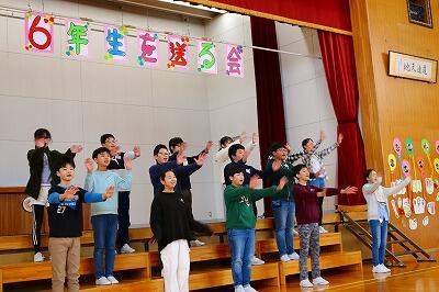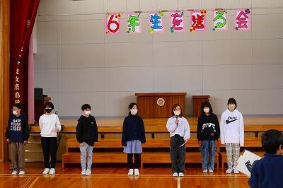 2時間目に全校生が体育館に集まり「6年生を送る会」を行いました。6年生へのインタビューや縦割り班で答えるクイズやゲームで楽しい時間を過ごしました。また在校生から6年生へありがとうの気持ちを込めたメッセージを贈った後,6年生からは1~5年生に学年ごとにメッセージが贈られました。それは「これまでありがとう」と「これまでがんばってたね、これからもがんばってね」という6年生からの心に響く言葉でした。また6年生からはダンスのプレセントもあり,寒い体育館がとても心暖まる空気に包まれました。