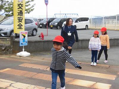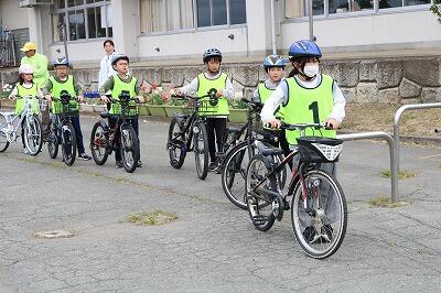 風があって肌寒い中でしたが、3・4年生は自転車乗りの訓練、1・2年生は学校周辺の歩行訓練を行いました。普段、道路を歩いたり自転車に乗ったりする際に注意しなければならないことなどを教えていただき、命を守るための学習になりました。