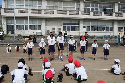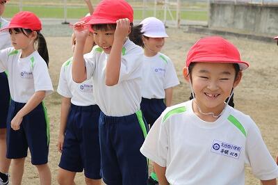 目標に向かって練習する子どもです。6年生がそっと1年生のそばについて伴走しました。