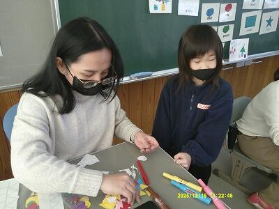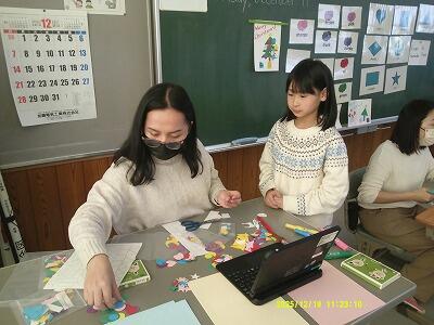 外国語を使って話す機会が自然と生まれる状況で、楽しいクリスマスカード作りになりました。