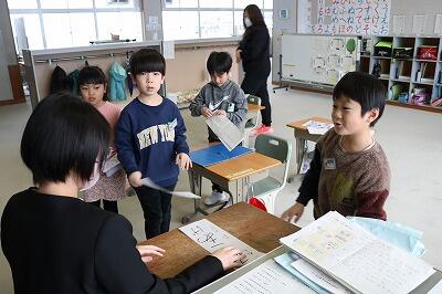 学級では、和やかに担任と会話する子ども達です。