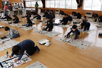 書初め大会 投稿: 北谷地小学校 (10:19) 1月9日(金) 書初め大会が行われました。 いつも書道を教えてもらっている地域の先生の書に表す様子を見ました。 「七転八起」あきらめないで挑戦する一年であってほしいです。 それぞれの学年で真剣に取り組むことができました。 Tweet -
